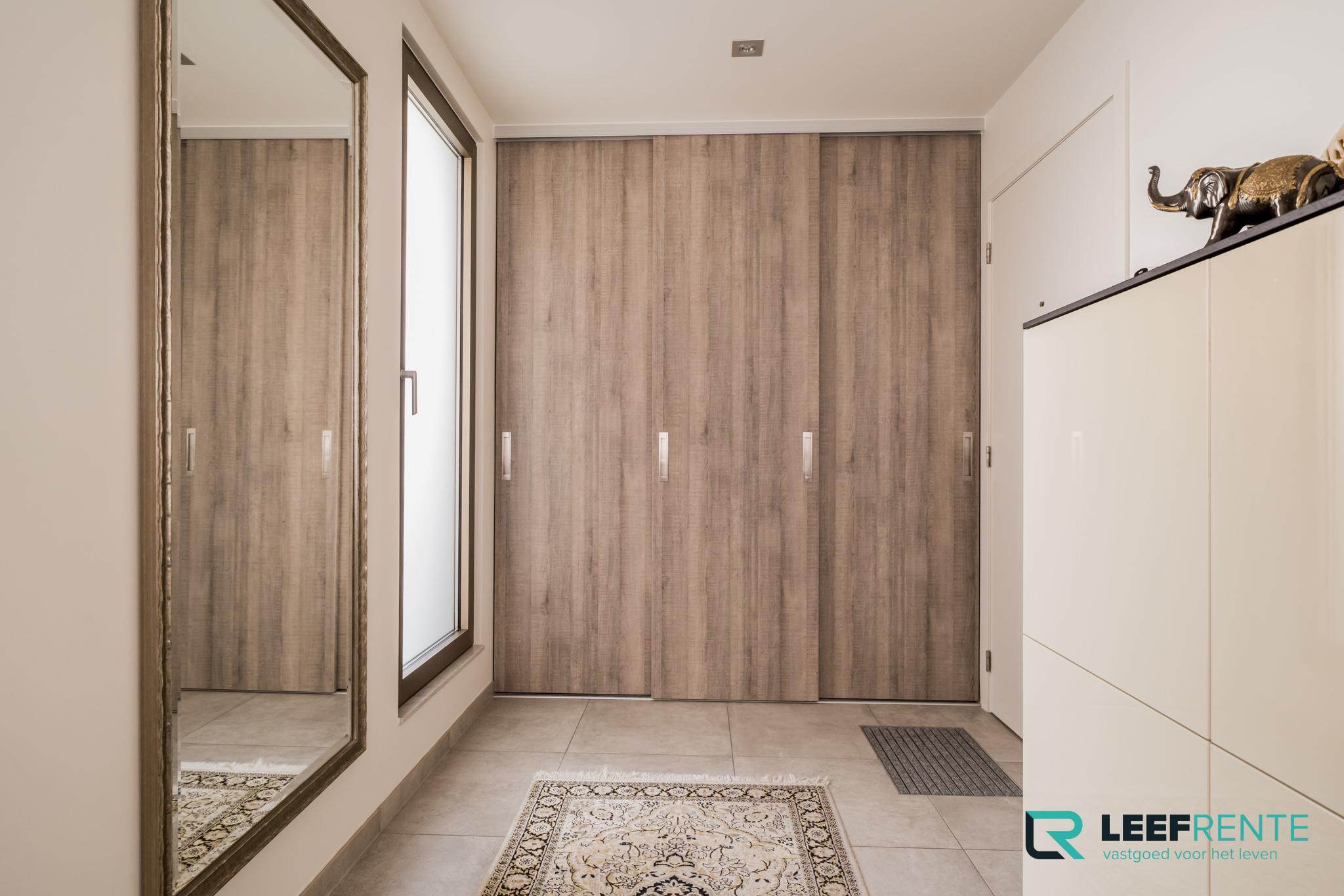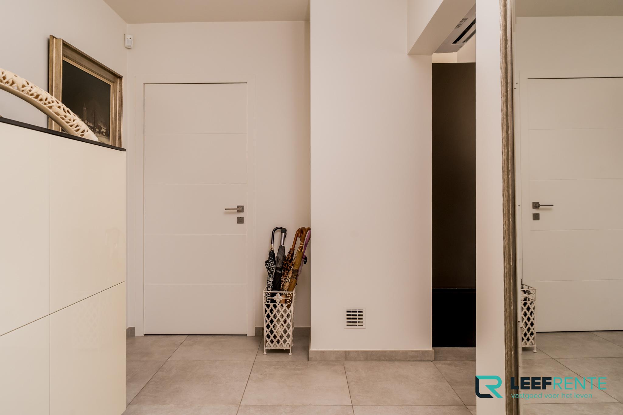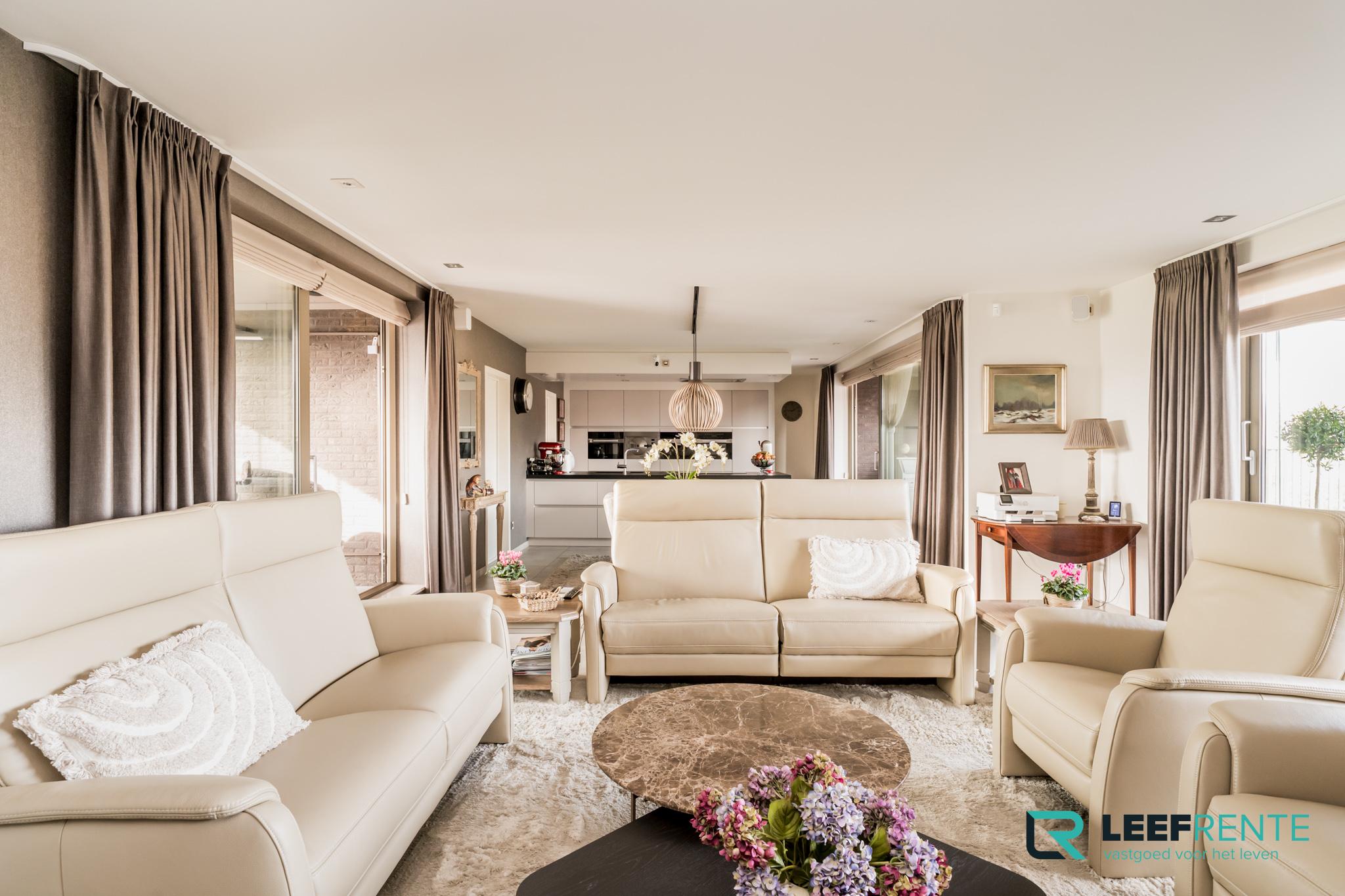 Binnenin valt het appartement op door zijn ruime, lichtovergoten leefruimte die werd afgewerkt met hoogwaardige en duurzame materialen zoals natuursteen, warm houten schrijnwerk en verfijnde interieurdetails. De open keuken is uitgerust met een high-end kookeiland, luxueuze maatwerkkasten en kwalitatieve inbouwtoestellen. De badkamer ademt elegantie dankzij de dubbele natuurstenen wastafel, stijlvolle kranen en harmonieus gekozen wand- en vloerafwerking, wat een serene en tijdloze sfeer creëert. Het appartement omvat daarnaast 2 volwaardige slaapkamers, een elegante dressing en een bijkomende kamer die uitstekend dienstdoet als bureau of hobbyruimte. De twee terrassen zorgen voor een overvloed aan licht en een aangenaam buitengevoel, waarbij het ingekapte terras met geïntegreerde verwarming en technieken een veelzijdige ruimte vormt die u het hele jaar door kunt benutten. Een kelderberging en een ondergrondse staanplaats vervolledigen dit uniek aanbod op lijfrente.